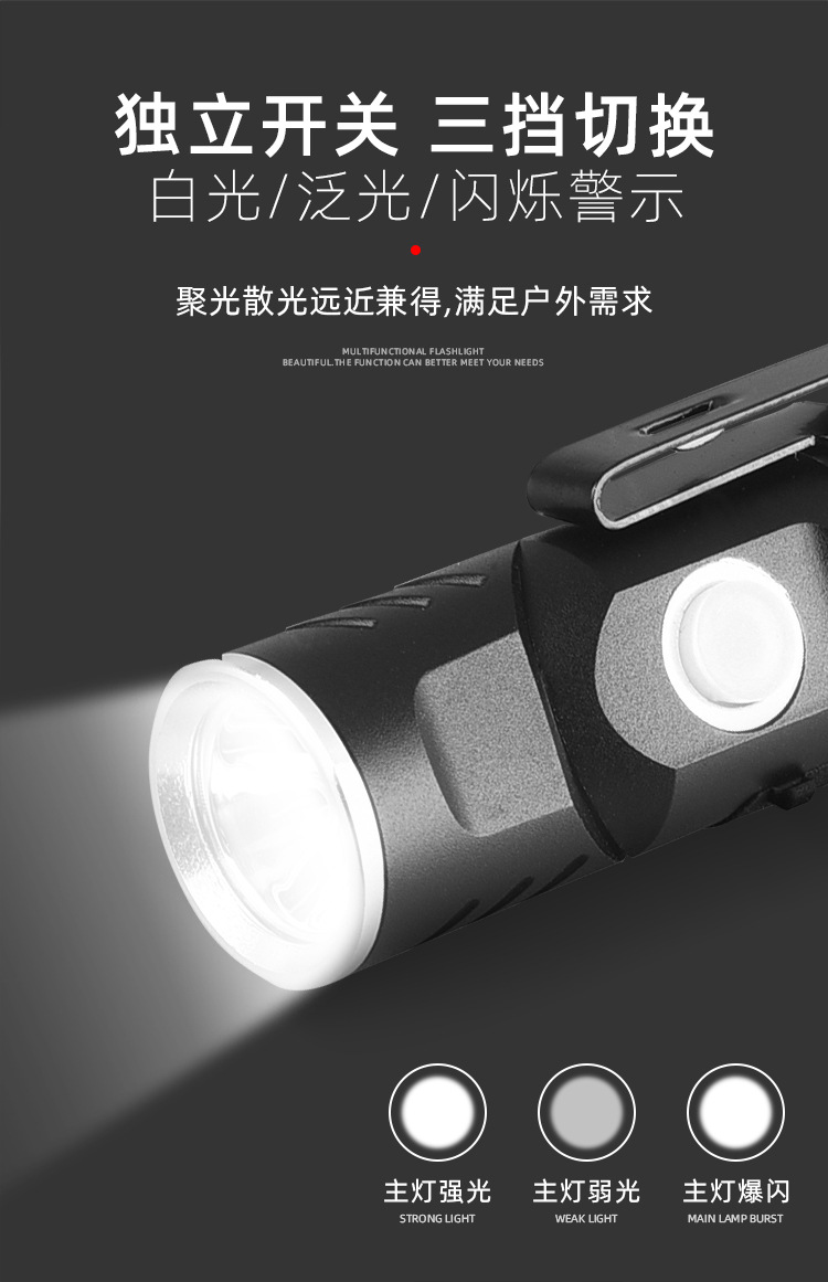 クロスボーダー90度調光回転懐中電灯充電led強光超亮磁石吸着修理車載作業灯