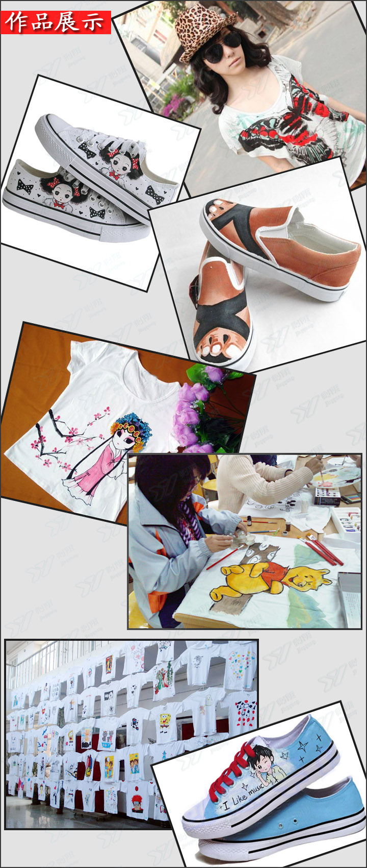 2*将颜料画于纺织品上后.先待其自然干燥再用约150c熨斗烫3~5分种,可使附着牢度大大提高.