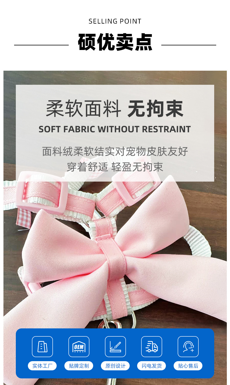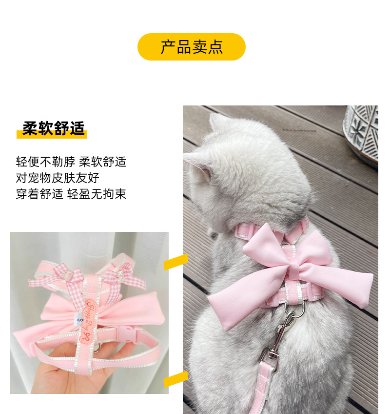 オリジナル新作学院風ペット胸牽引ロープ小型犬猫胸ストラップかわいい子犬ペット用品