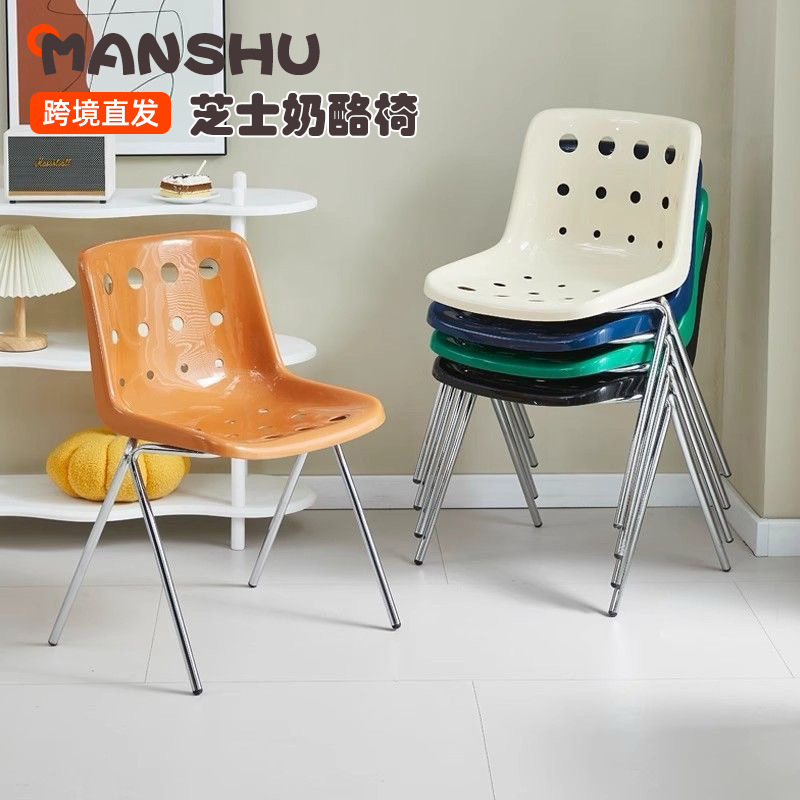 ins风网红设计师款餐椅小户型pp材质简易靠背椅芝士奶酪椅洞洞椅