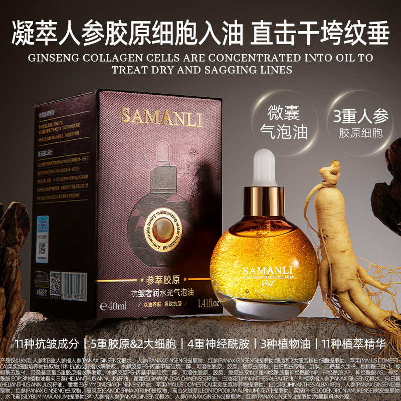 シャマンリ高麗人参エキスコラーゲン抗シワ贅沢保湿バブルオイル保湿抗シワ引き締めスキンケアエッセンスオイル