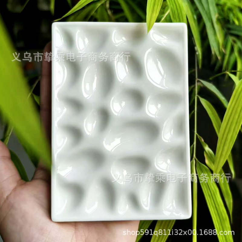 鹅卵石长方形陶瓷调色盘调色板美术生水彩绘画文房四宝椭圆波浪
