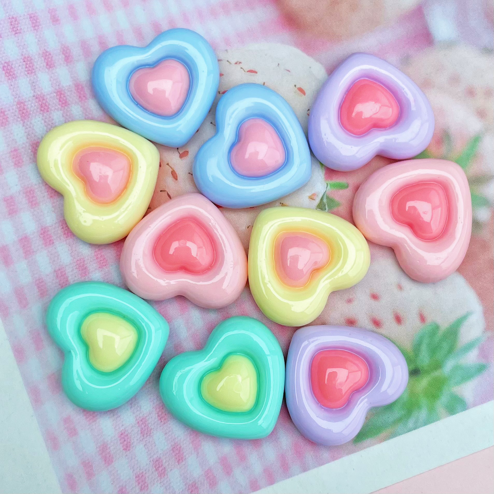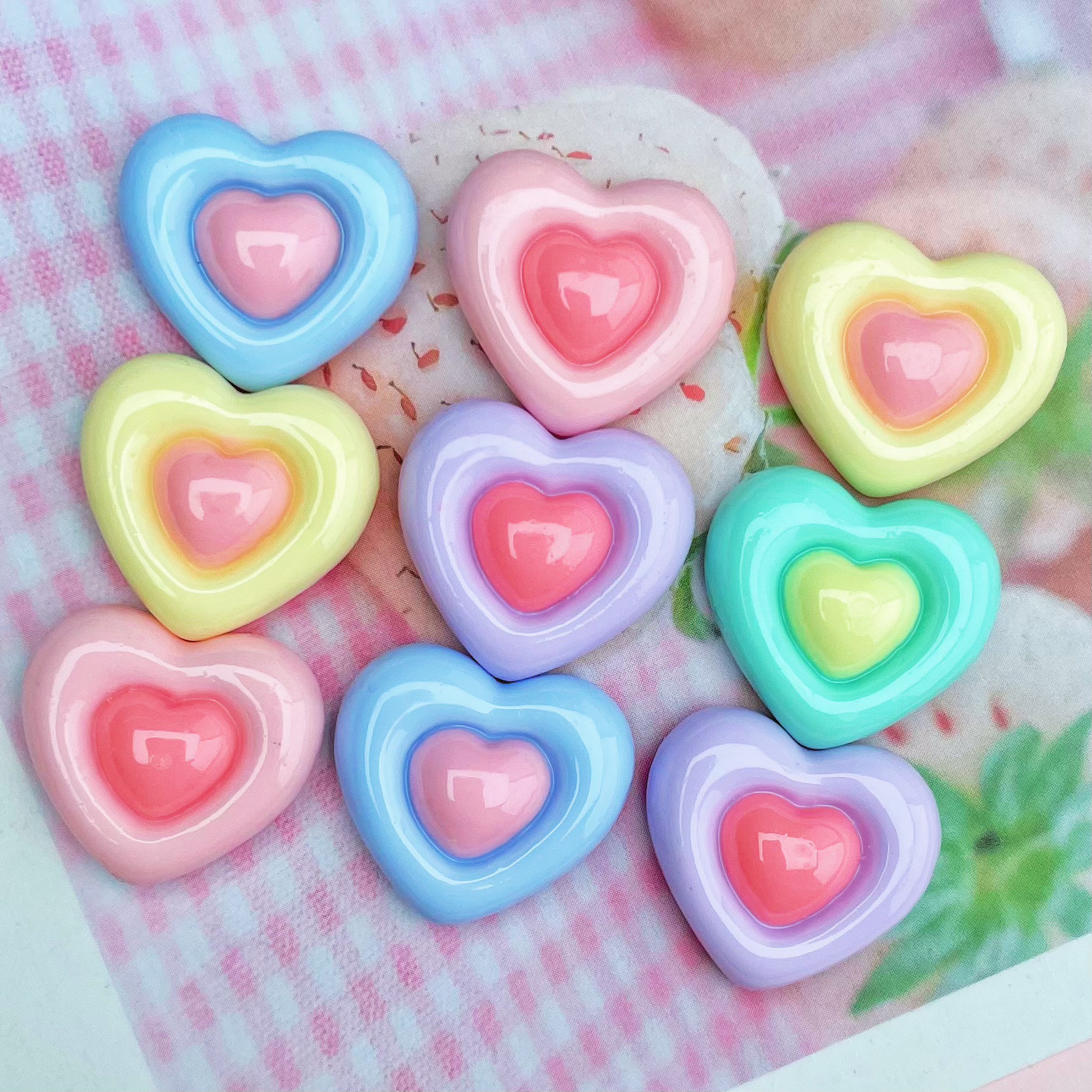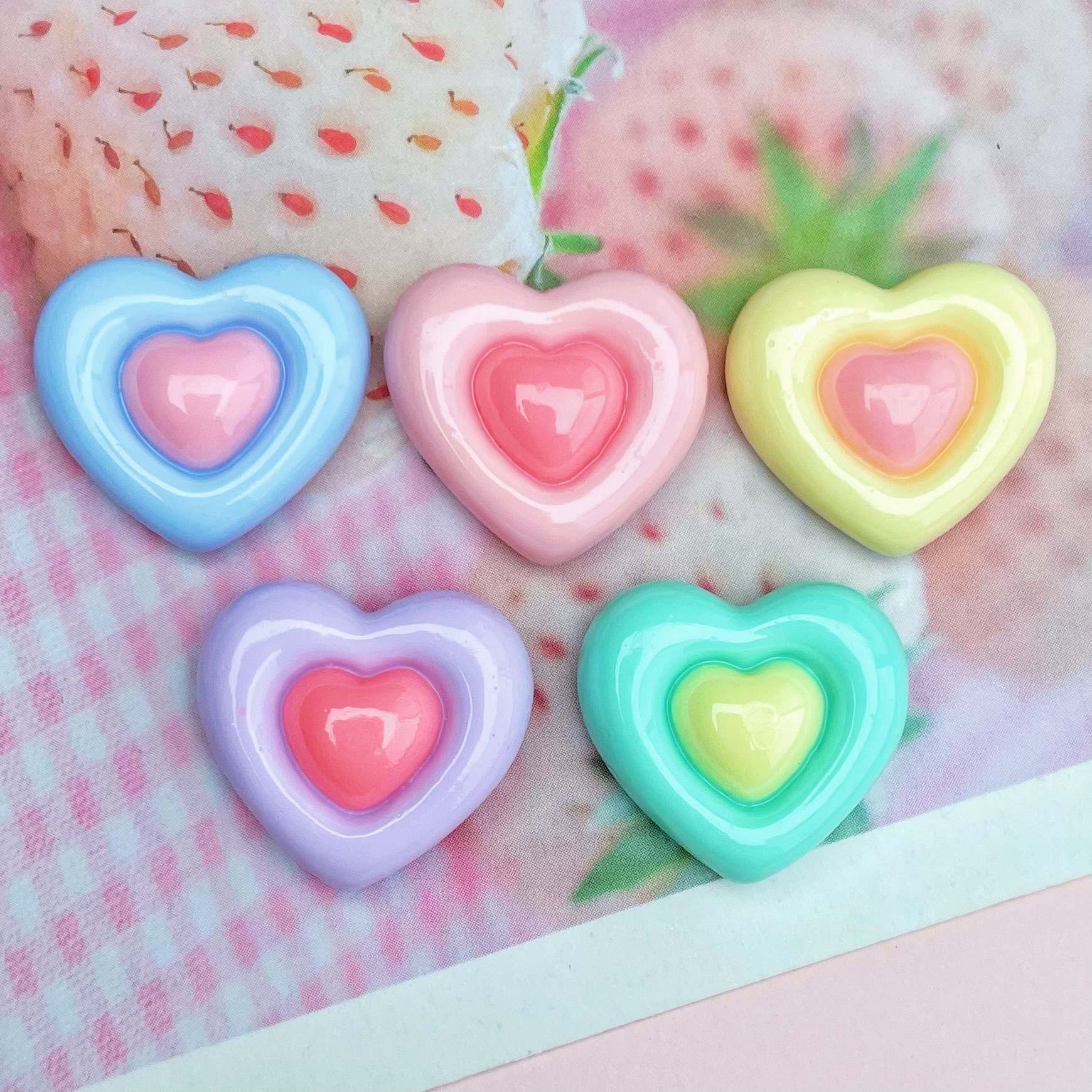 甘美なコンビネーションカラーダブル愛樹脂パッチイヤリングヘアクリップ携帯ケースDIYアクセサリー部品卸売り