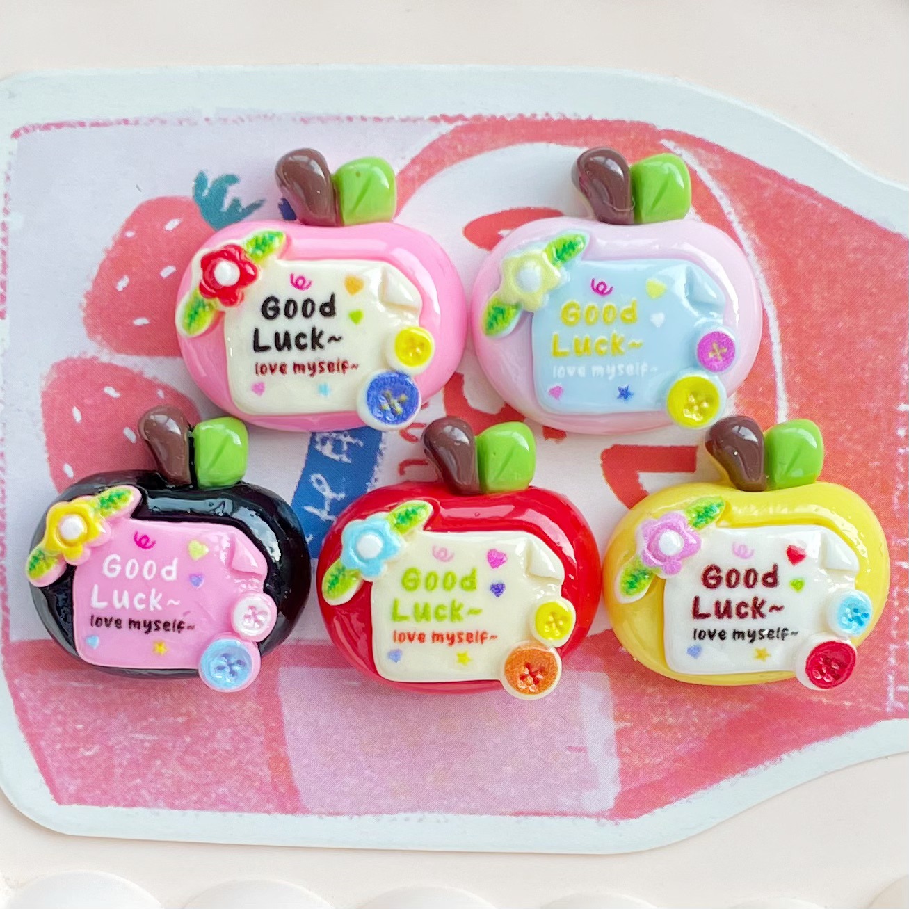 可爱卡通水果Good Luck红苹果 树脂配件饰品奶油胶手机壳手工材料