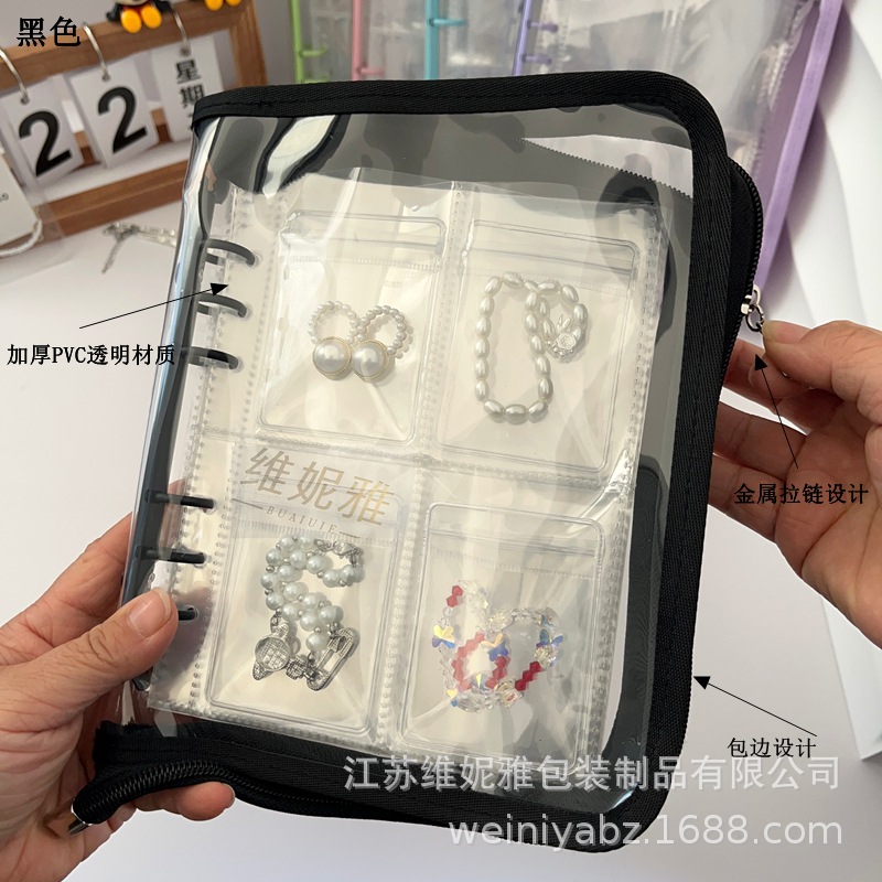 クロスボーダー透明PVCジッパージュエリーバッグ旅行アクセサリーバッグバインダーアクセサリー収納本イヤリングネックレス収納ボックス