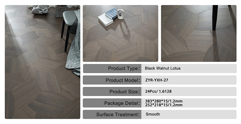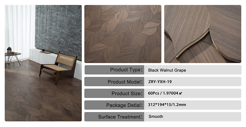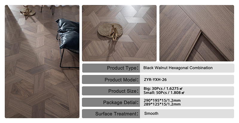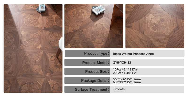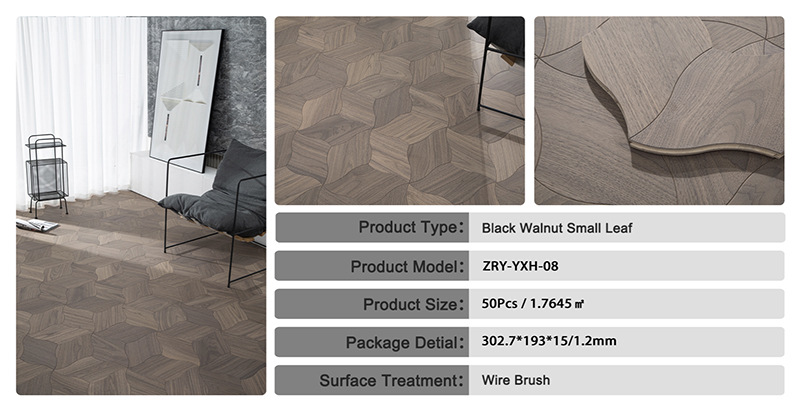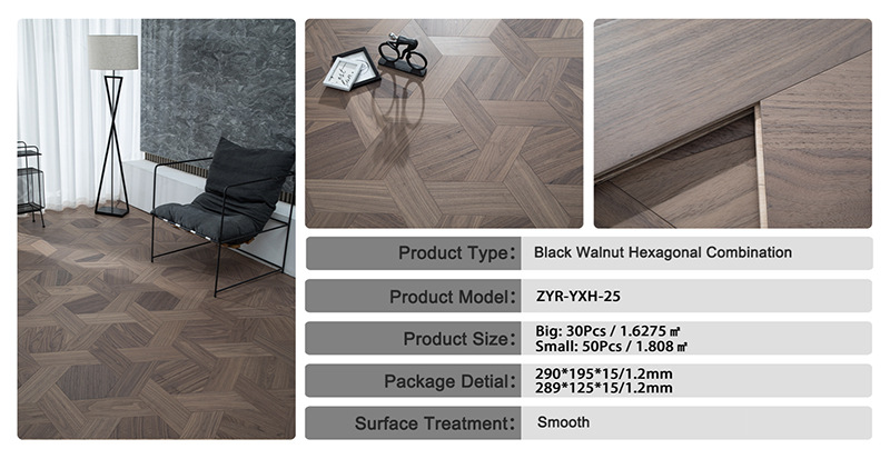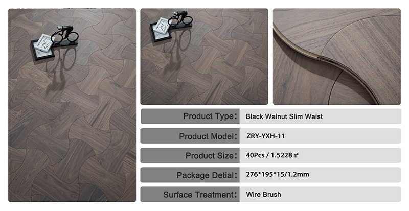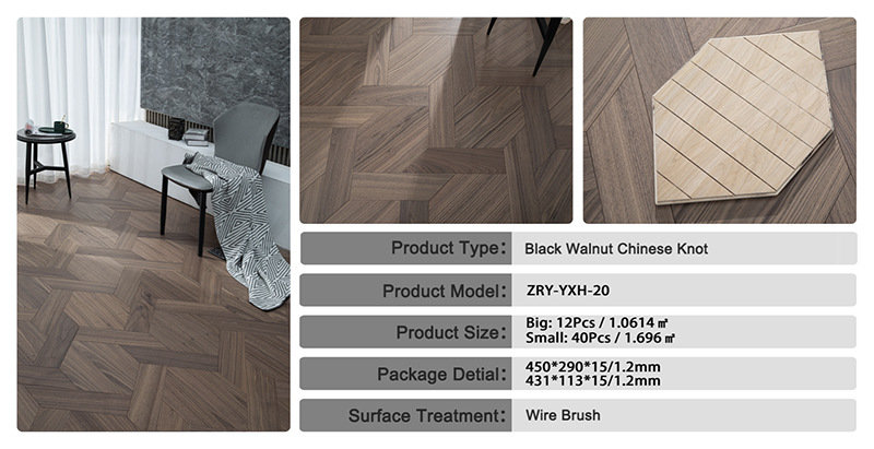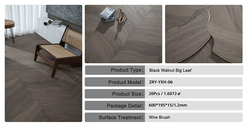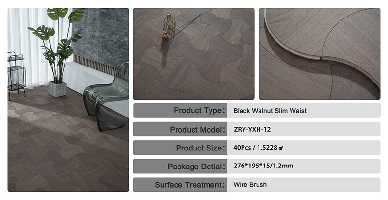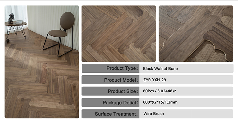 多層無垢材フローリングブラックウォールナットフィッシュボーンフローリングJXシリーズゲストレストラン寝室ヨーロッパアメリカンスタイルフローリング