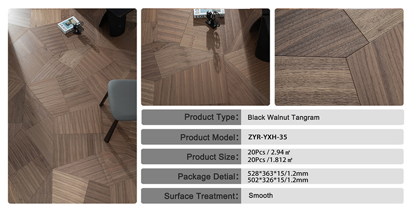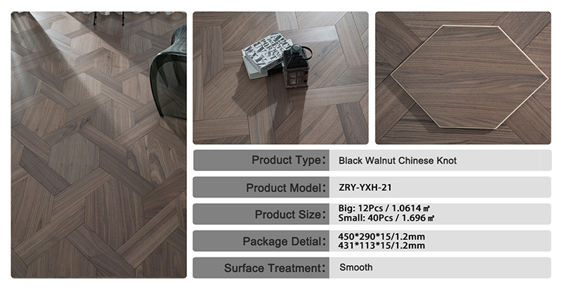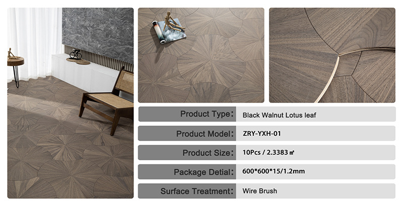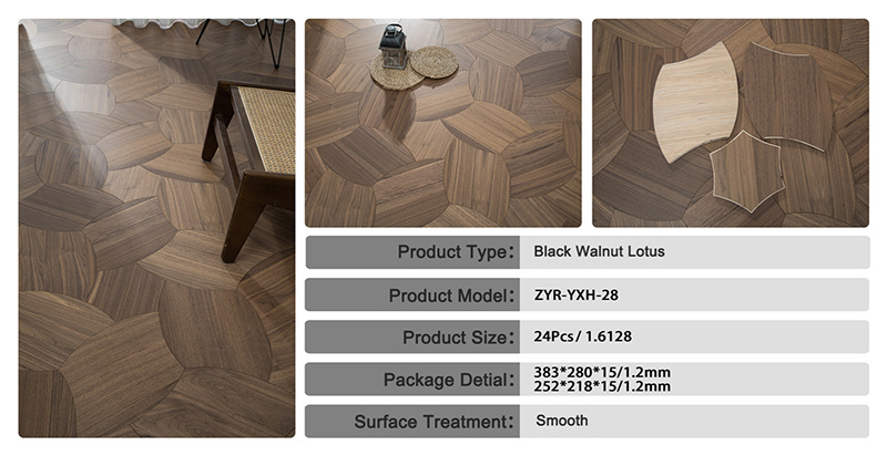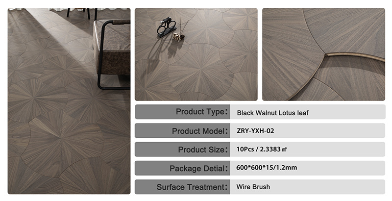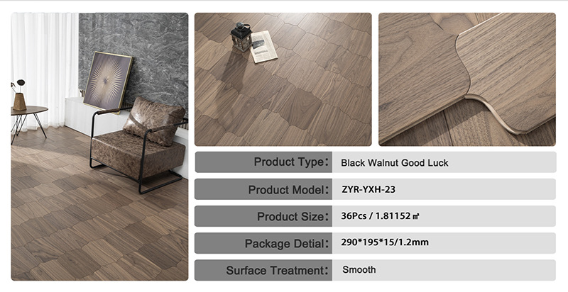 寄木細工無垢材フローリング 純無垢材 特殊形状 床暖房 多層 ブラックウォールナット原木 湖州南浔工場 家庭用
