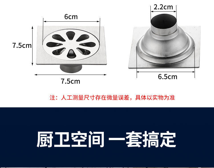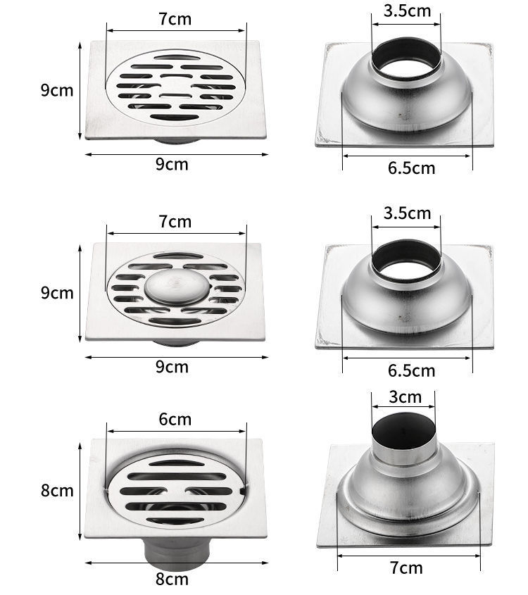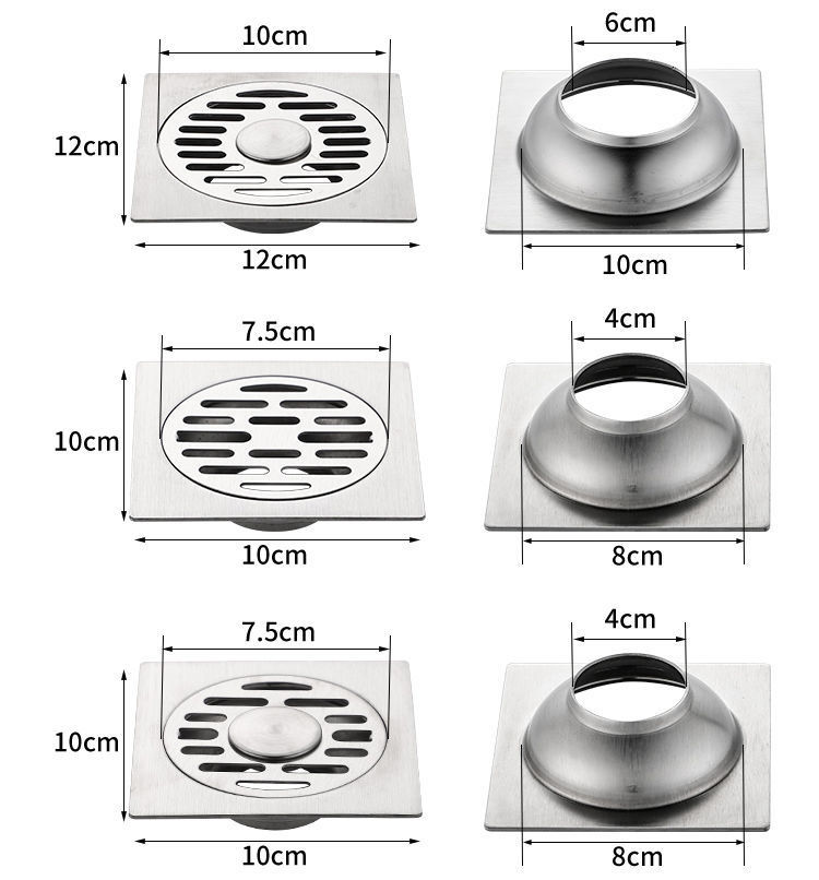 仕様 7.5cm * 7.5cm厚さの単用地漏れ,9cm * 9cm厚さシングル用床漏れ,10cm * 10cm厚さシングル用床漏れ,10cm * 10cm厚さ二重床漏れ,12cm * 12cm厚さシングル用床漏れ,12CM * 12CM厚さ二重床漏れ,15CM * 15CM厚さシングル用床漏れ,15CM * 15CM厚さ二重床漏れ,20CM * 20CM厚さシングル使用地漏れ,円形-9cm厚さシングル用床漏れ,円形-10cm厚さシングル用床漏れ,円形-10cm厚さ二重床漏れ,その他のデザインはカスタマーサービスに連絡してカスタマイズできます。