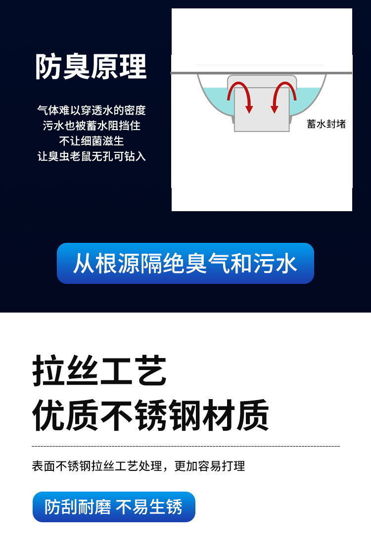304ステンレスステルス大地漏れ家庭用防臭芯浴室角形トイレ防臭神器隠れ地漏れ