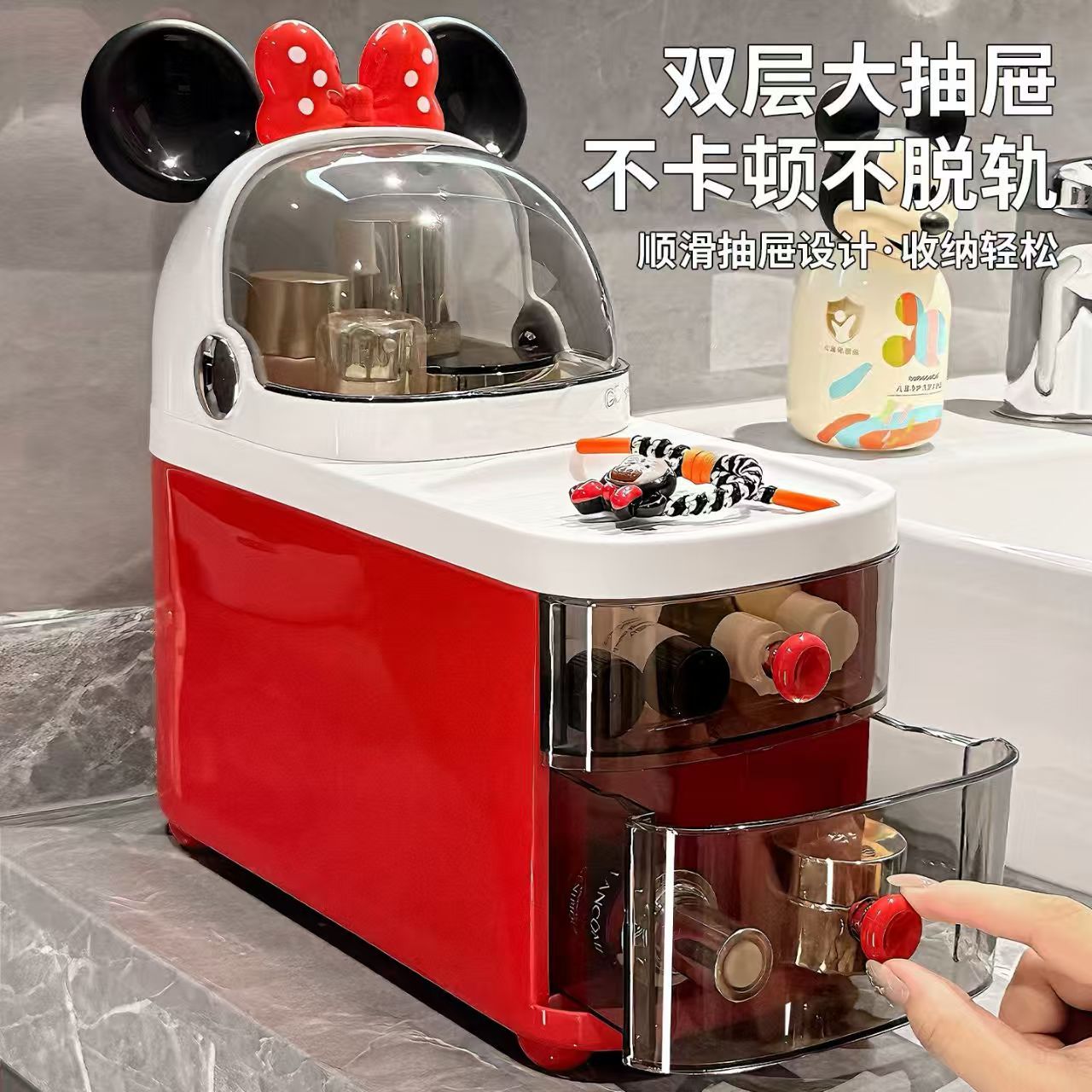 新品化粧品収納ボックスドレッサーライト付き鏡一体回転高級感デスクトップスキンケア用品棚