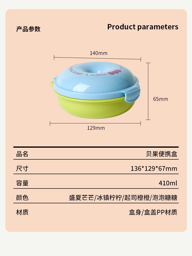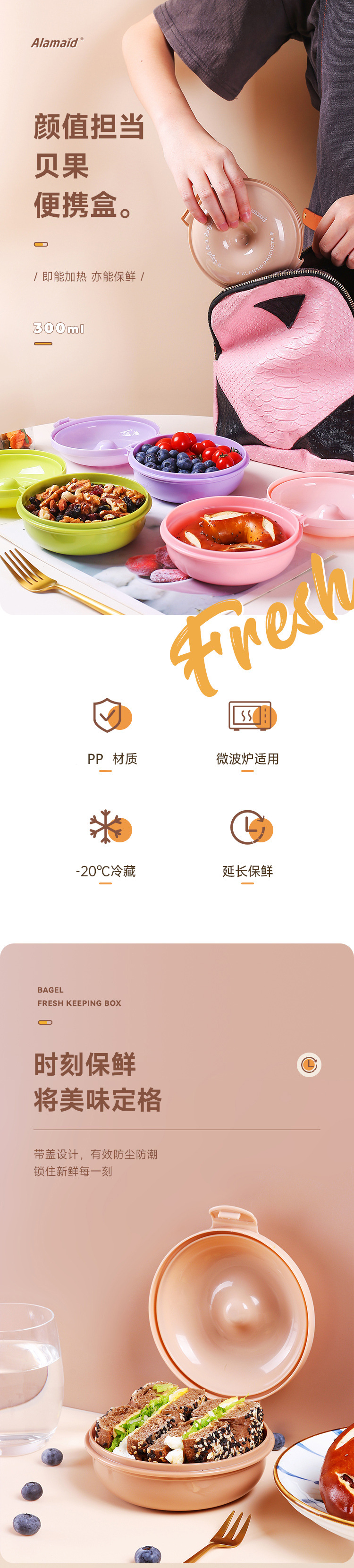 Alamaid貝果箱高颜値プラスチック食品級マイクロ波蓋付き携帯出勤昼食保冷箱