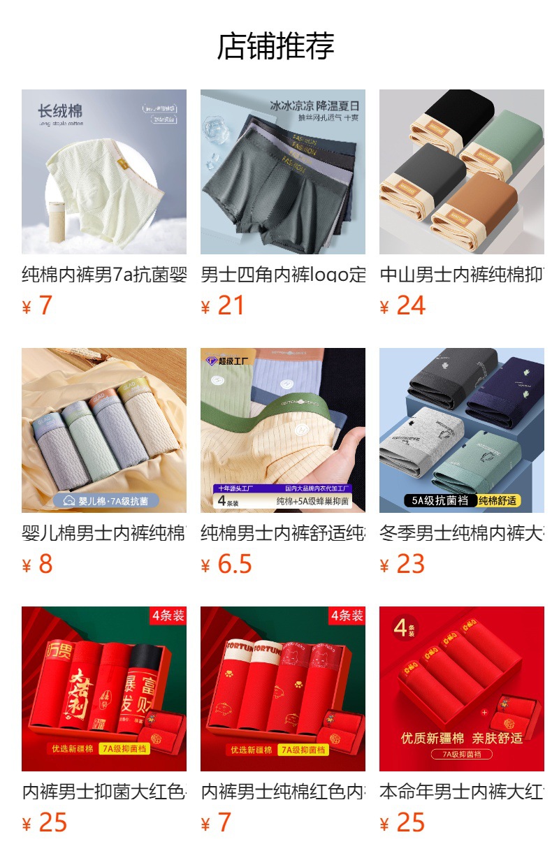 新型メンズパンツ純綿抗菌平角ズボン運動通気半ズボンニット中腰四角ズボン中山工場