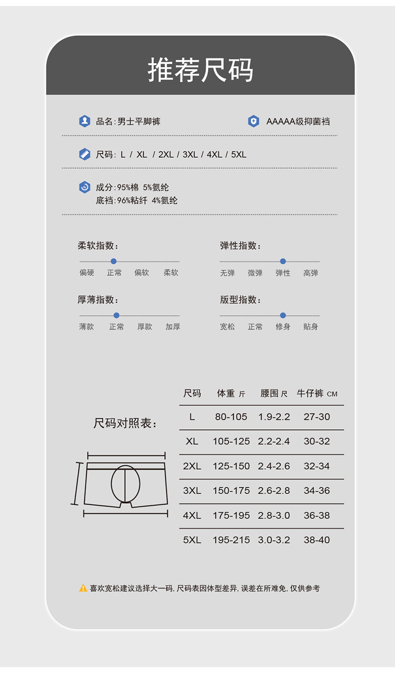 パンツ男純綿四季A類抗菌绢糸股中腰青少年男仕大サイズ平角四角パンツ