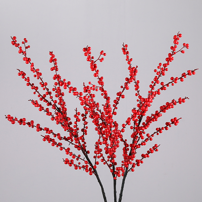 赤い果実の財果のシミュレーションの花は冬の青い食卓を飾って花の高級な造花を飾って客間の乾花の装飾の置物を飾ります。