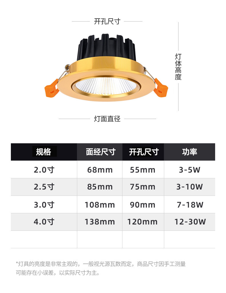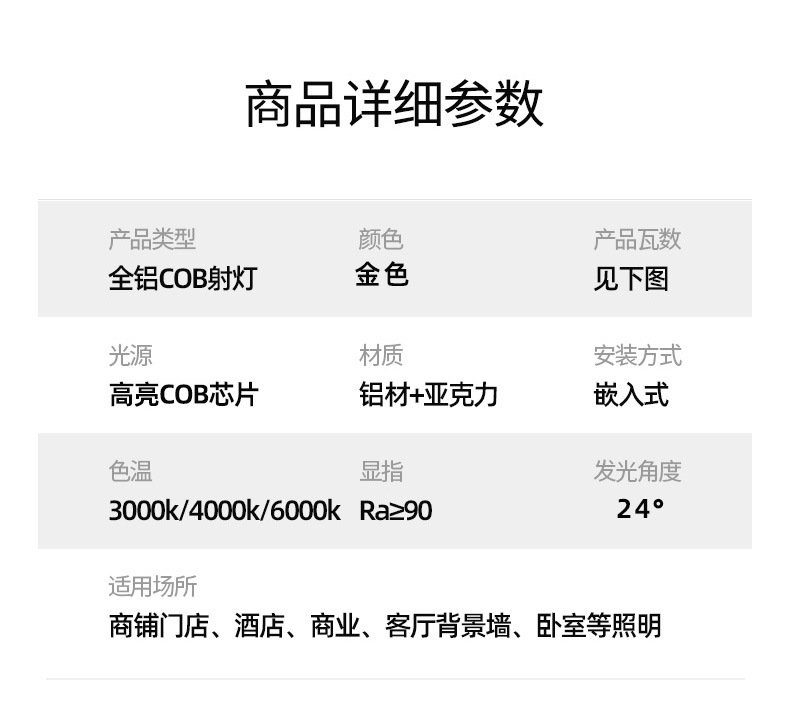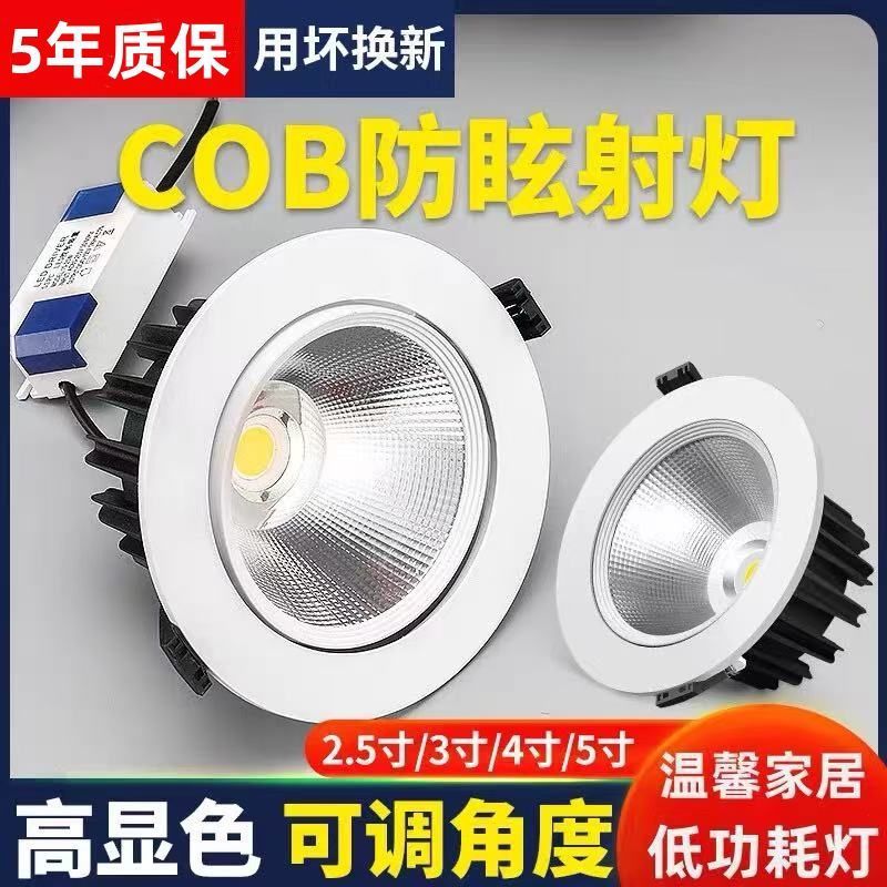 商用店铺COB射灯嵌入式LED天花灯筒灯暗装内嵌家用客厅背景墙孔灯