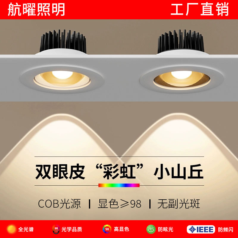 彩虹小山丘射灯全光谱嵌入式led客厅家用2025新款双眼皮防眩筒灯