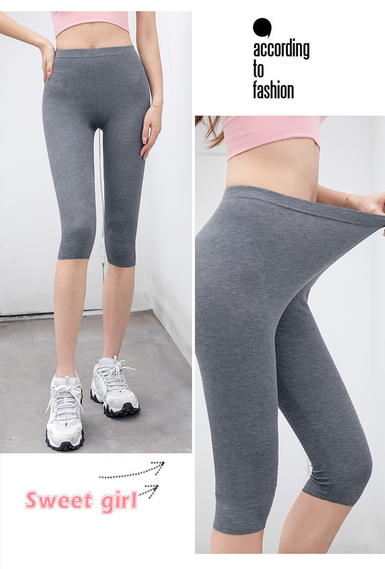 モーダルのレギンスの薄いタイプの女性は9分のズボンを着ています。