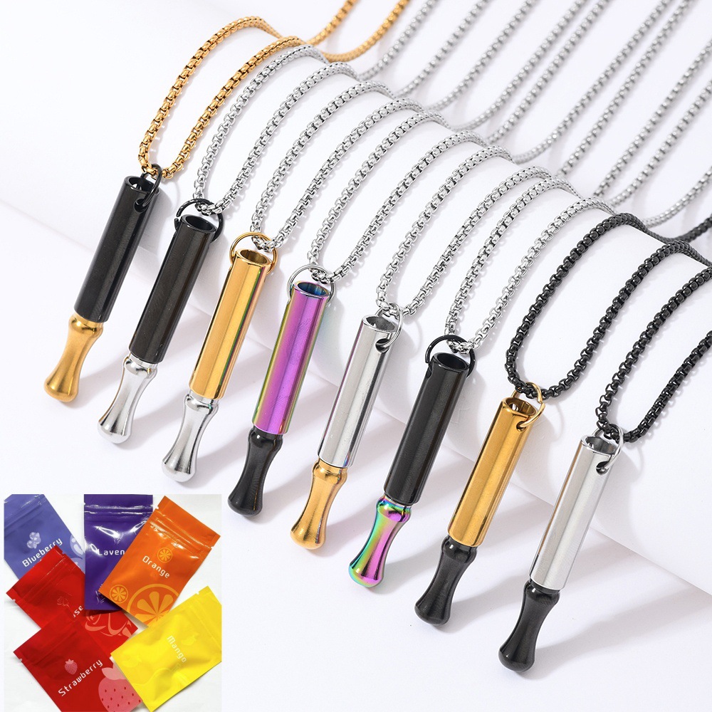 时尚不锈钢拼接色冥想呼吸项链个性口哨吊坠可拆开香薰戒烟神器