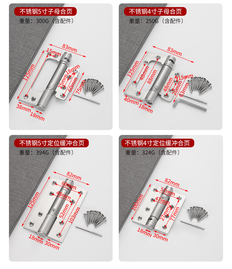 メーカー卸売 4inch 5inch 偏軸ステンレス製両開き蝶番 寝室の木製ドア用 溝切り不要 隠し折りたたみ式