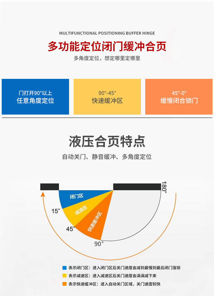 液压合页缓冲隐形门自动关闭阻尼静音弹簧房门回弹定位子母铰链