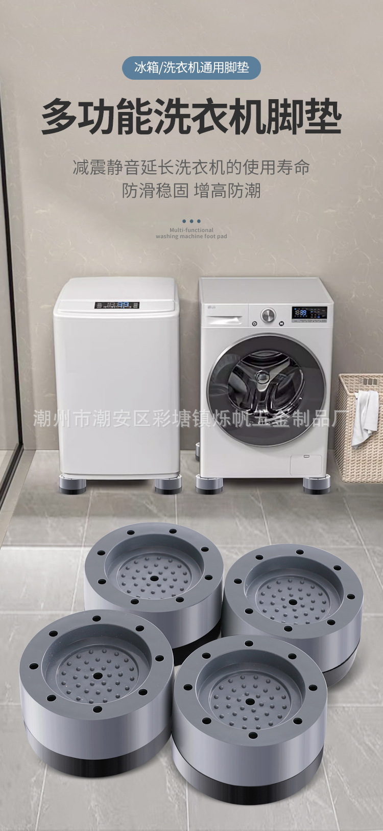 調整可能な洗濯機フットパッド、衝撃吸収滑り止めフットパッド、衝撃吸収滑り止めパルセータードラム、全自動ユニバーサル冷蔵庫ラック