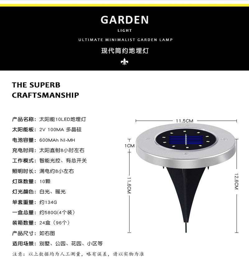 国境を越えた太陽エネルギー地埋灯屋外円形地灯埋め込み式庭園芝生灯防水庭灯スポット