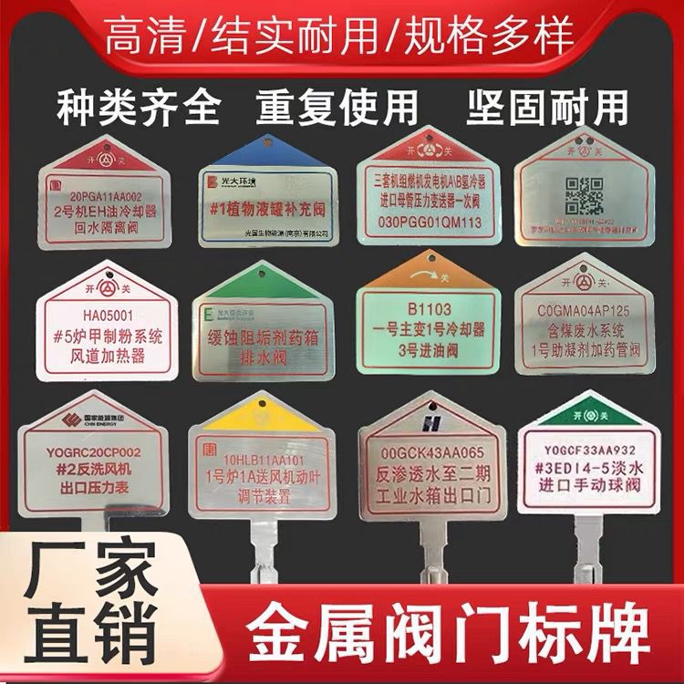ステンレス鋼バルブ標識銘板機器アルミ板反射発光プラスチック警告標識発電所識別ブラケット加工