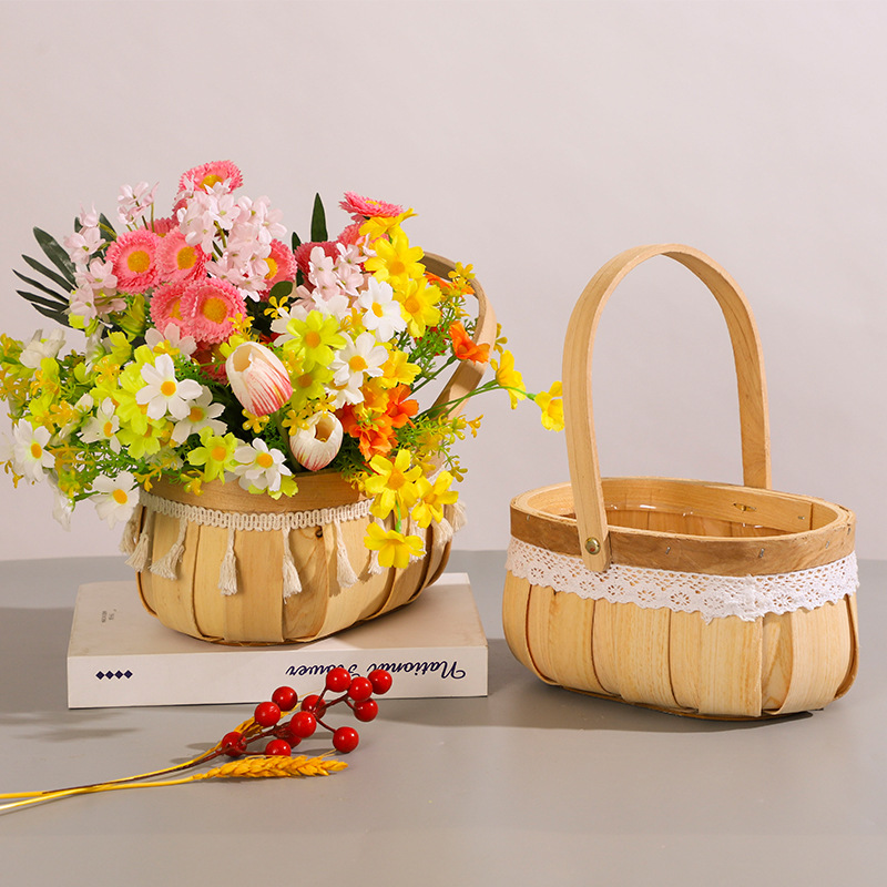 長方形ポータブルウッドチップフラワーバスケット籐多肉植物バスケット