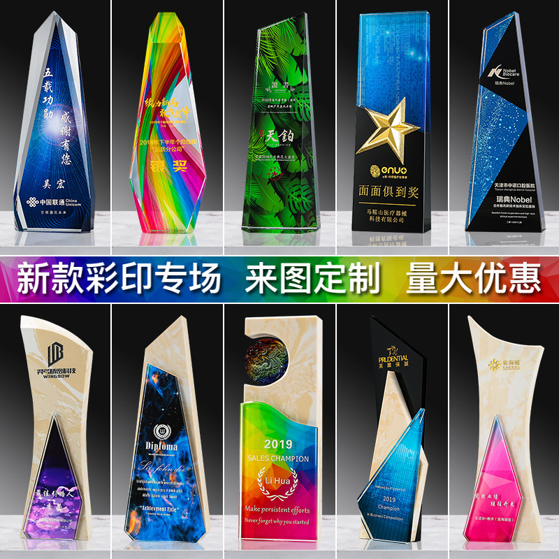 メーカー直供創意水晶トロフィー優秀企業社員会社年次総会記念品置物亜鉛合金メダル