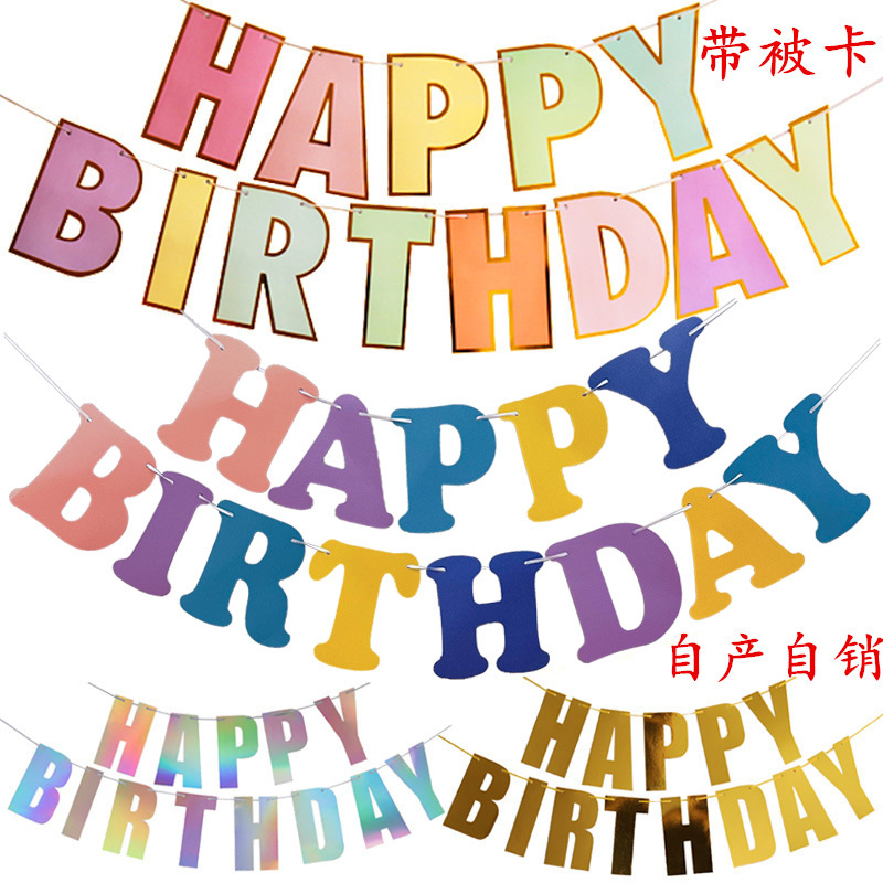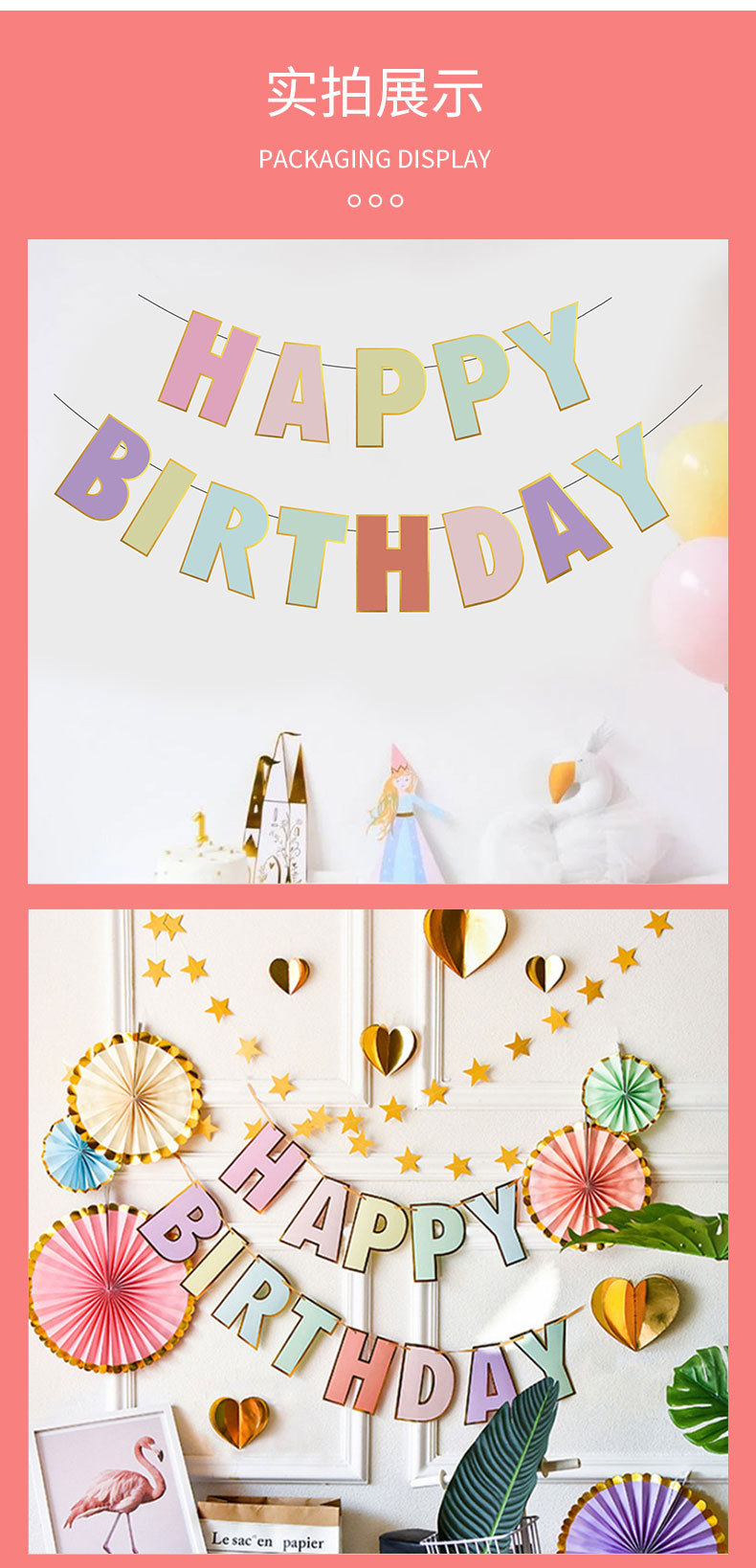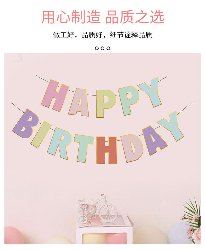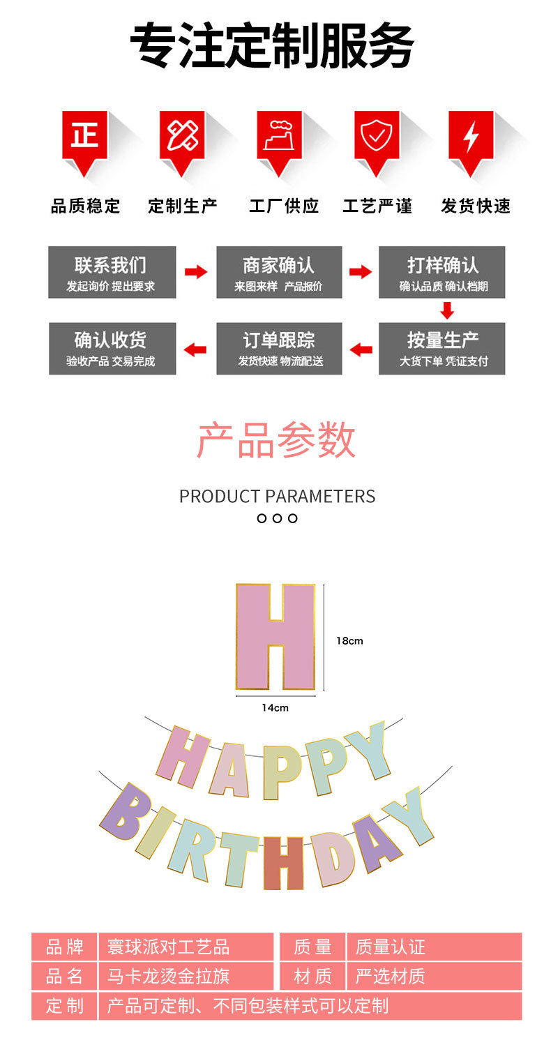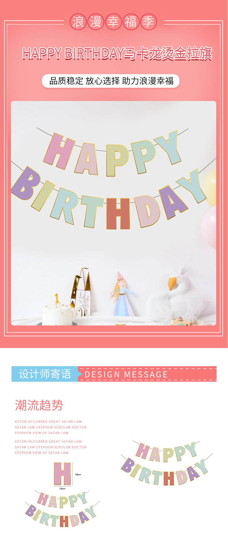 メーカー直販HAPPY BIRTHDAYマカロン箔押し旗誕生日パーティーシーン装飾道具