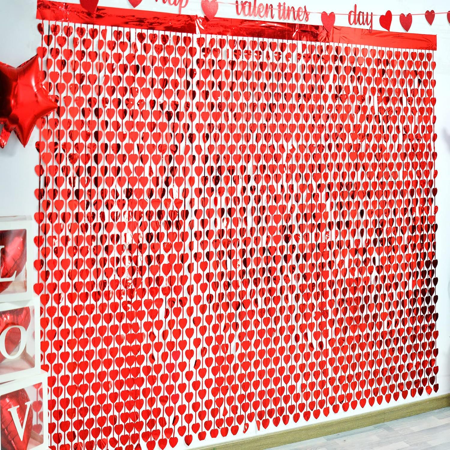 クロスボーダー1 * 2M赤ハート雨カーテンタッセルバレンタイン結婚式婚約記念日パーティー背景装飾
