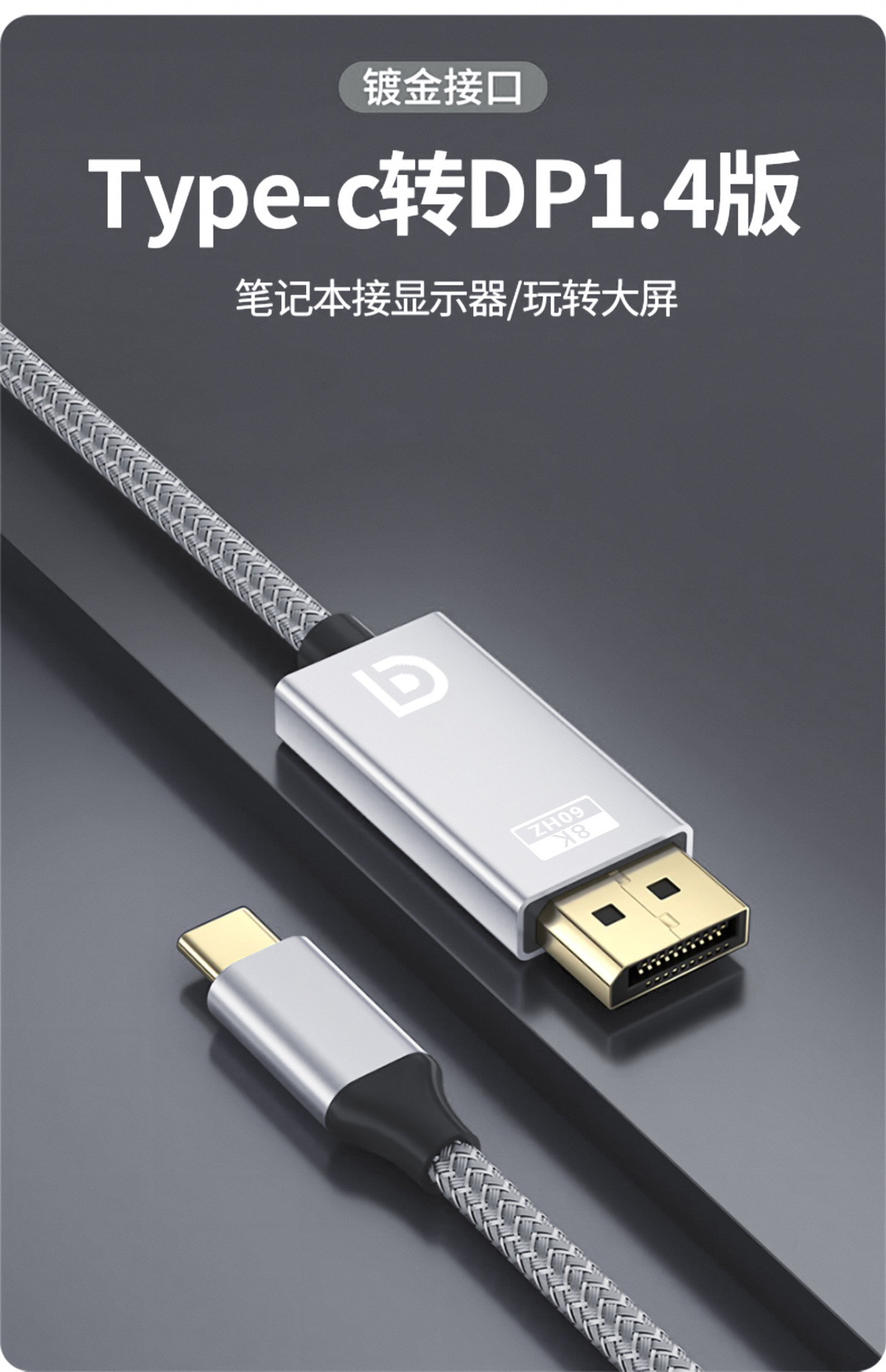 Type-c转DP线8K60Hz电脑手机投屏高清视频编织转换线typec转dp线