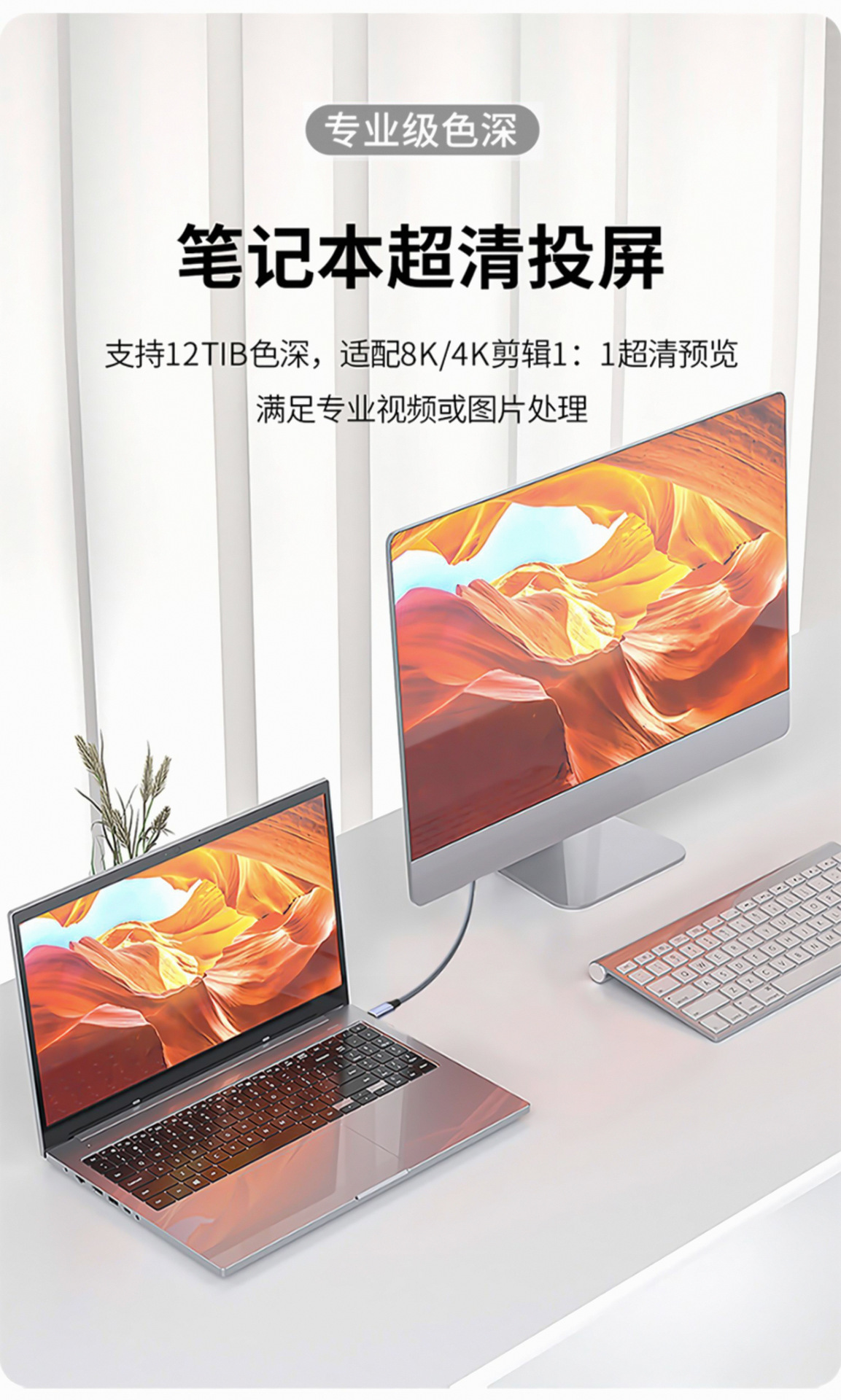 Type-c转DP转接线4K60HZ手机笔记本电脑接大屏显示器高清投屏线
