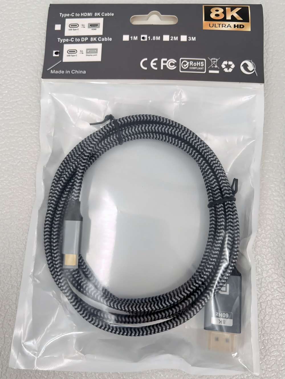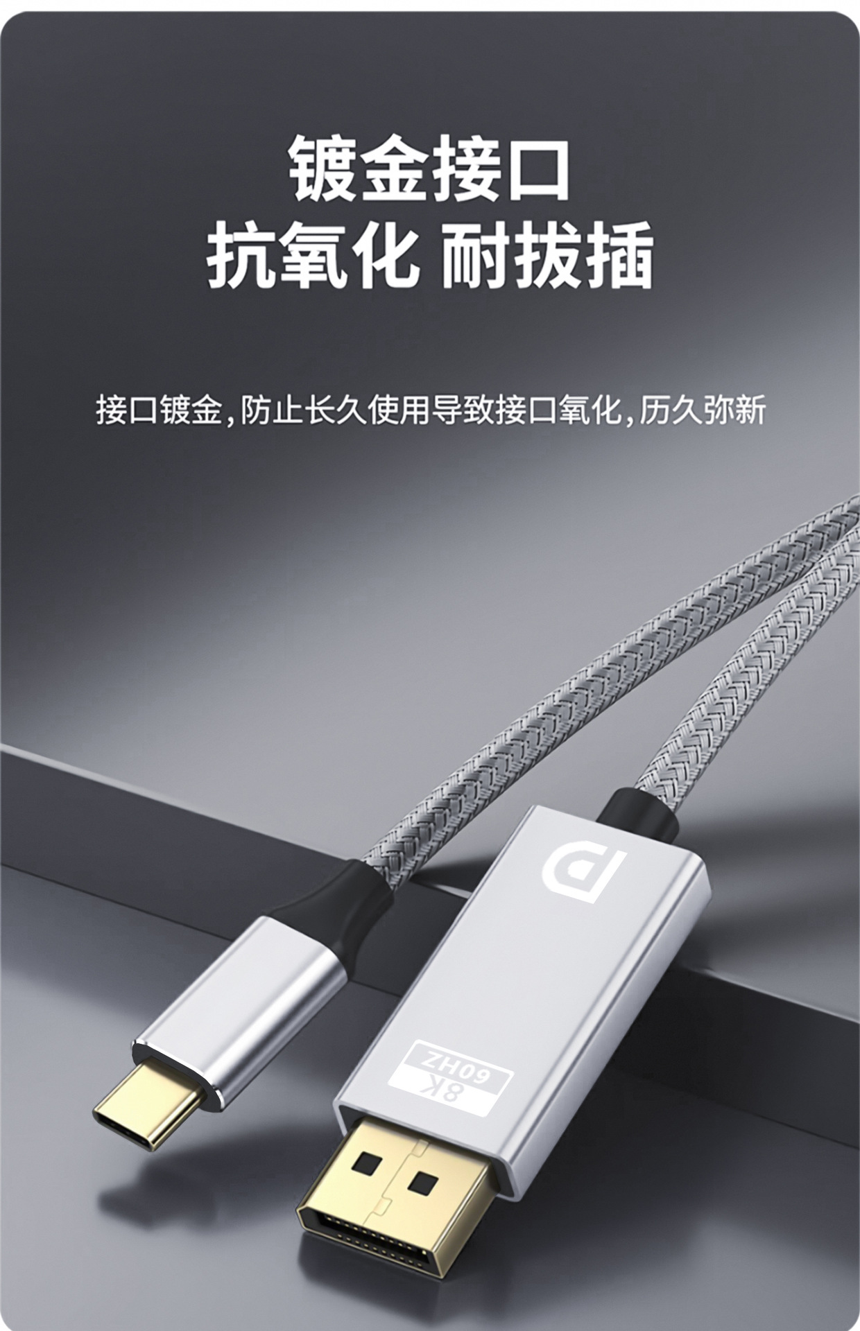 跨境Type-c转DP线8K60Hz电脑手机笔记本投屏高清视频编织转换线