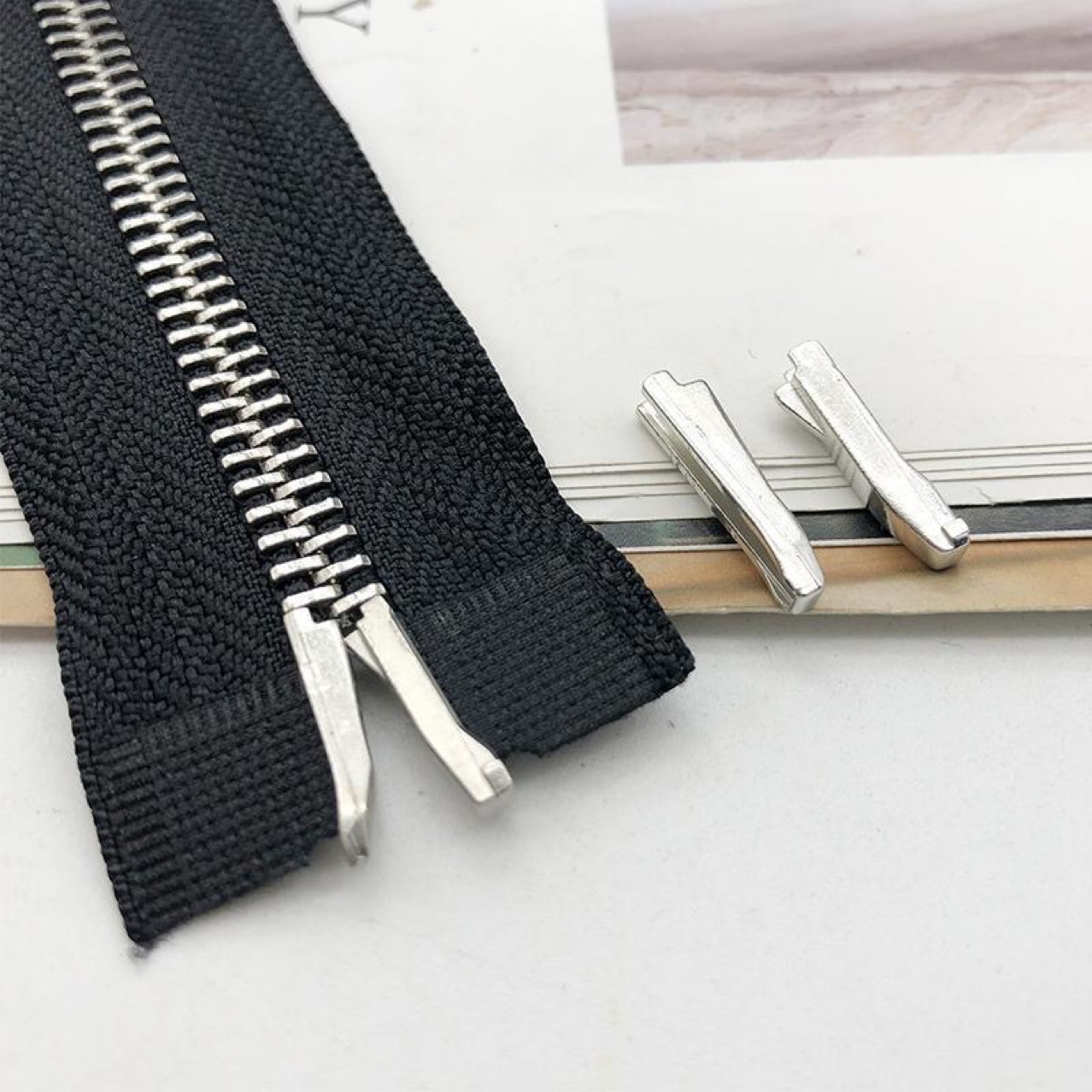 現物卸売り金属ファスナーヘッド3号5号8号ナイロン長板ヘッド塗装電気白バッグ服装プルヘッド