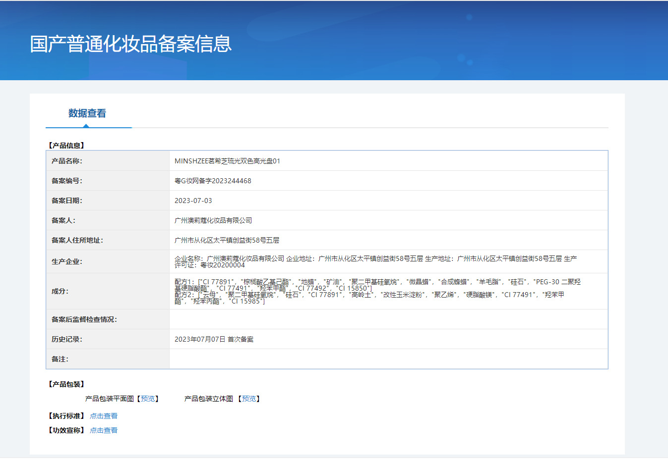 特殊化粧品登録証番号 広東省Gメイクアップネットワーク準備番号2023244468
