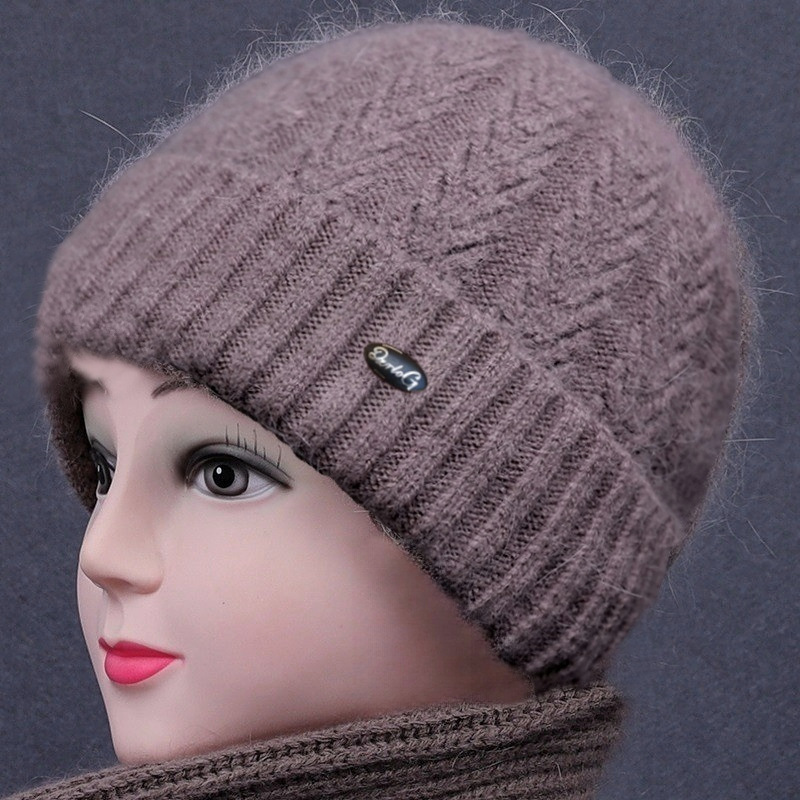 中高年向けの秋冬のウールの帽子とスカーフセット、エレガントで多用途、ベルベットの暖かいリスベルベットの女性用ニット帽