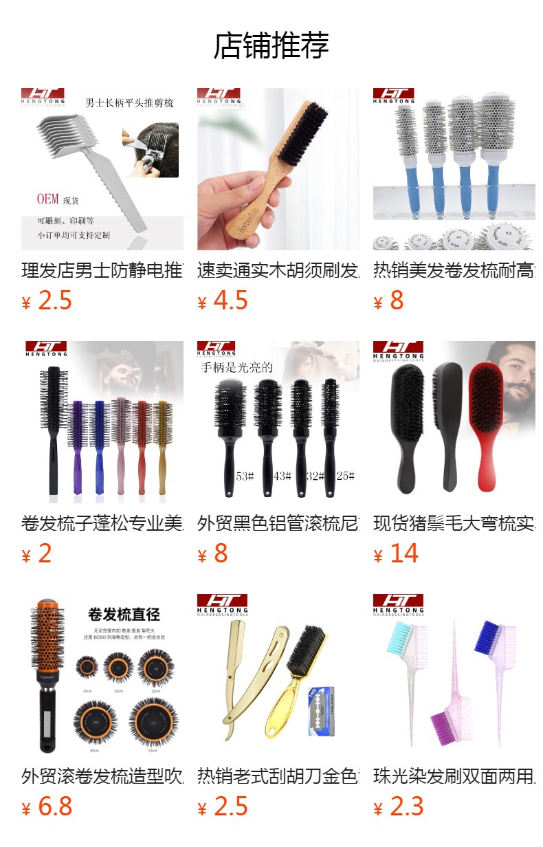 直供に延長専門の櫛の円筒巻き髪を伸ばして、豚のたてがみの毛の中に髪の形をして、櫛の卸売りをします。