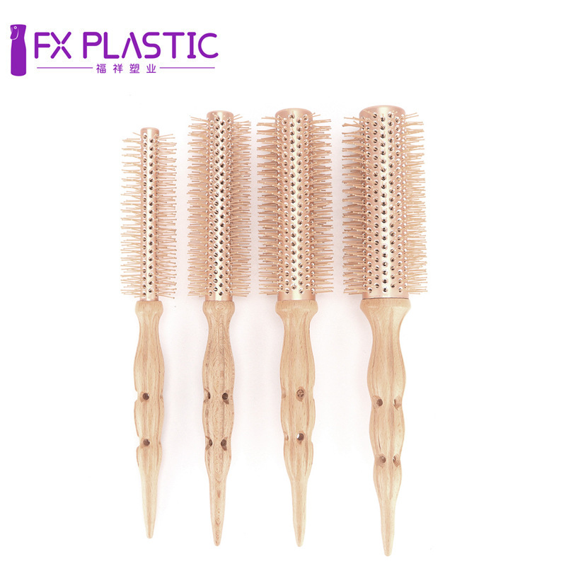 卸売カーリーヘアスタイリングストレートヘアふわふわコームカーリングコームインナーバックル高温耐性コームローリングコーム理髪木製ラウンドローリングコーム