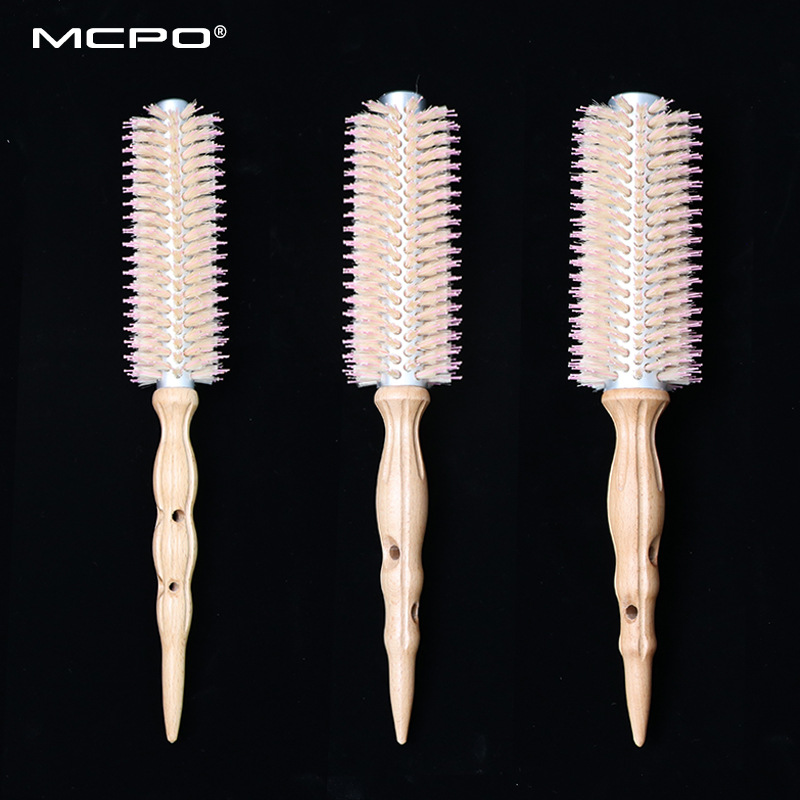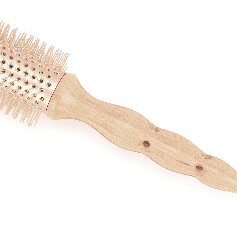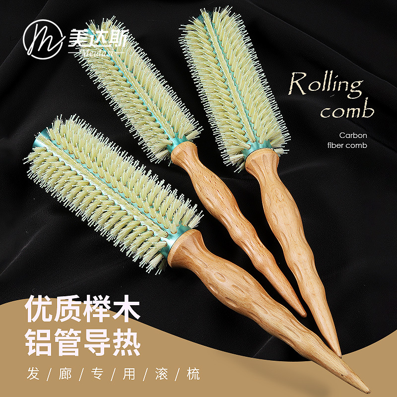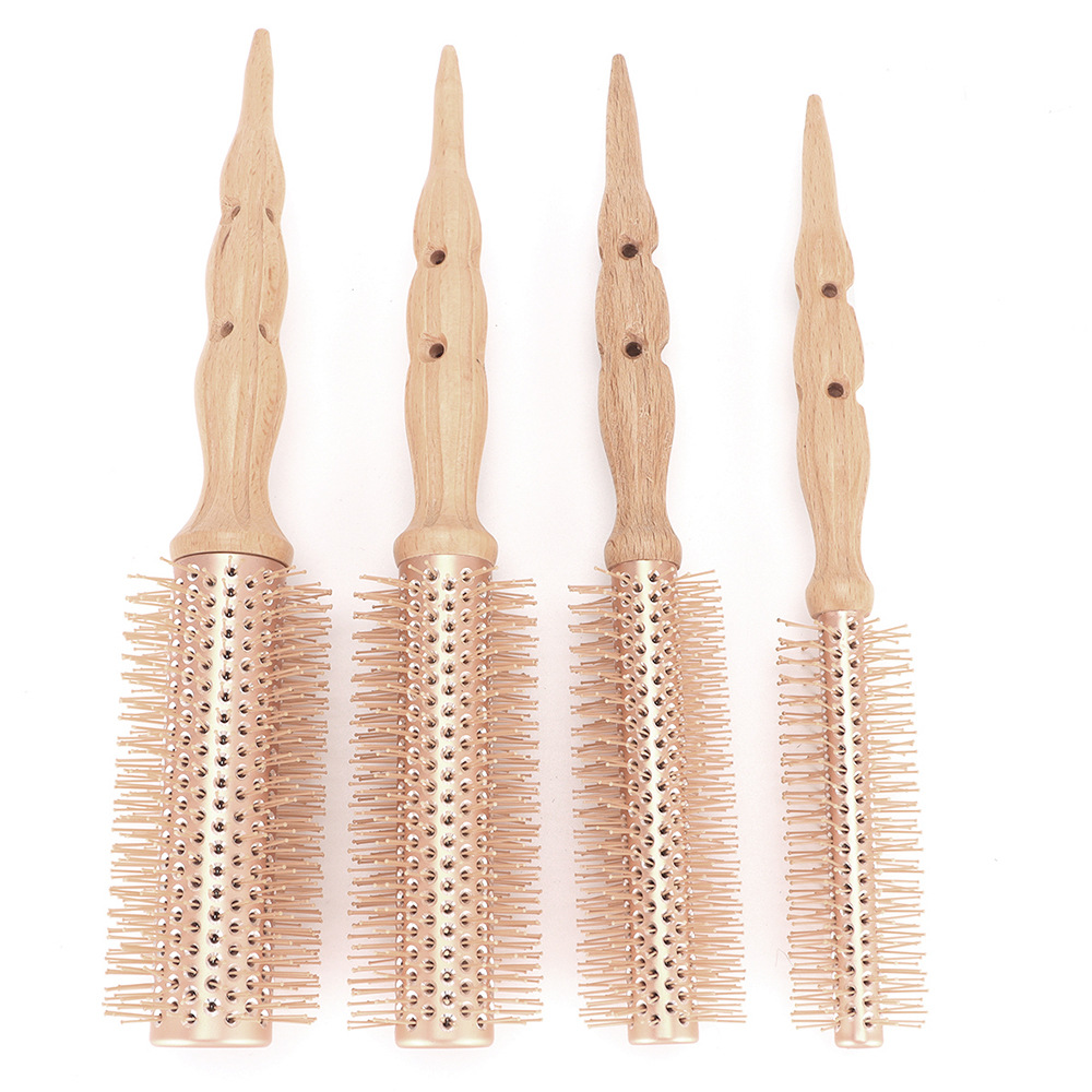 メーカー卸売アルミチューブブナ毛ローラーコーム高温耐性カーリングコームインナーバックルビッグウェーブスタイル無垢材コーム