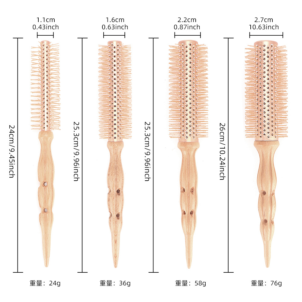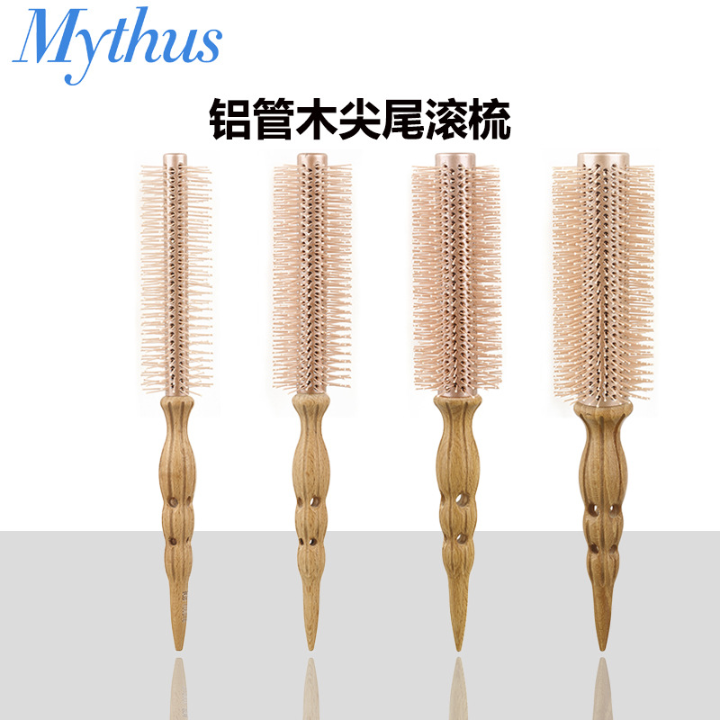 亚马逊美发造型木滚梳发廊卷发圆筒铝管梳发根蓬松刘海尖尾梳跨境