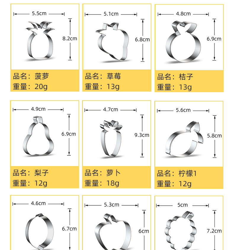 Jinjia ハードウェアフルーツバナナイチゴリンゴステンレス鋼クッキー型ベーキングフォンダンクッキーおにぎりケーキ型