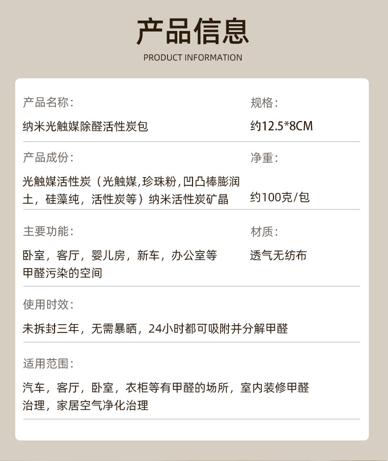 セールスポイント2 ホルムアルデヒド除去剤活性炭ナノミネラルクリスタル炭パッケージ新車の消臭ホルムアルデヒド除去