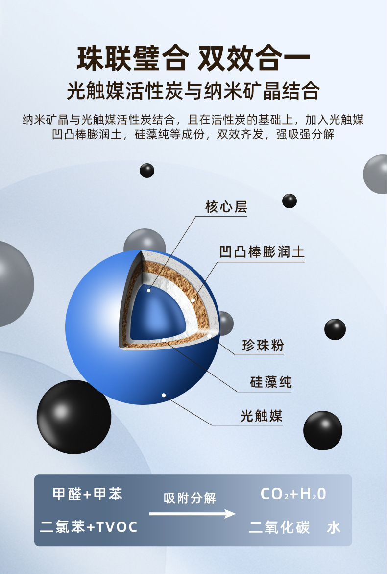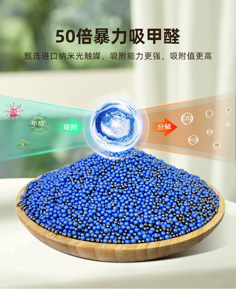 ホルムアルデヒド除去、臭気除去、活性炭、車載臭気吸収光触媒、ホルムアルデヒド粒子除去、高マンガン酸カリウムボール、変色炭袋
