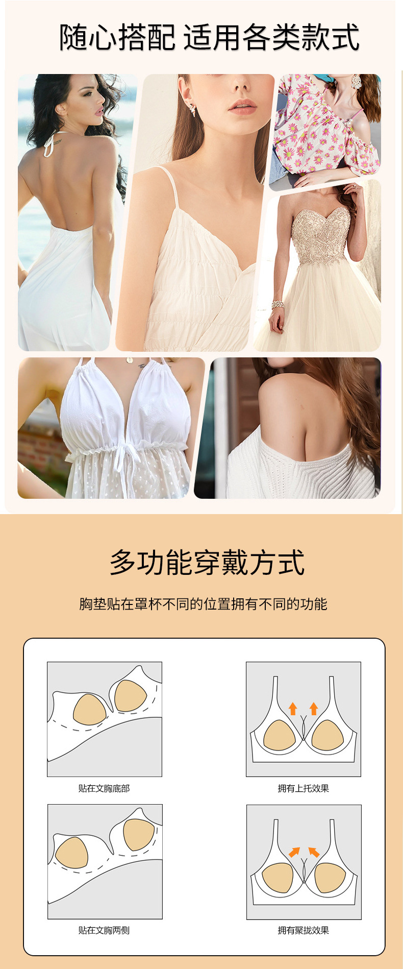 女性用両面ブラッシングブラパッド、粘着式貧乳、増粘、目に見えない、跡が残らない、通気性、拡大スポンジブラパッドインサート