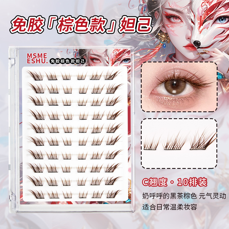 女性用ハニーバンドダージフェイクまつげ、ショートフォックスブラウンフェイクまつげ、斜めの新しい中国風の接着剤不使用のセグメント化されたシミュレーションナチュラル