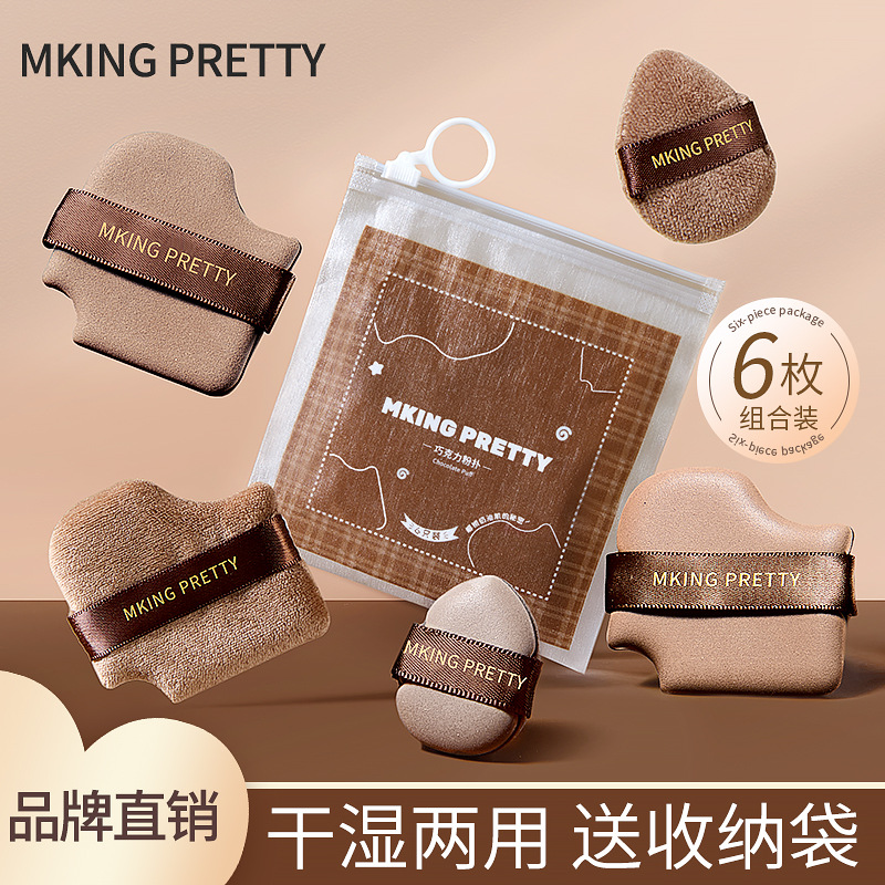 【6個入】MKING PRETTY チョコレートパウダーパフ 女性用リキッドファンデーション専用 ウェット&ドライ両用で粉を食べにくい