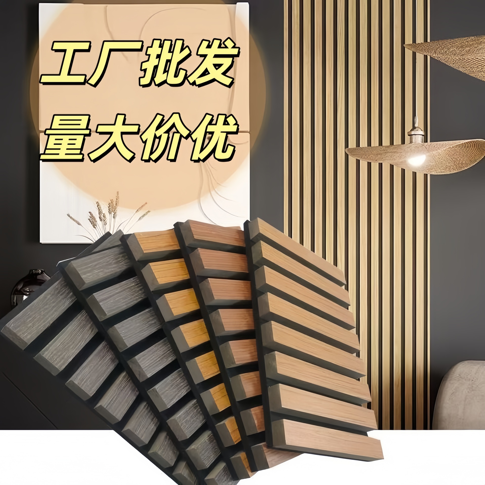 グリル吸音パネル、遮音パネル、木製ストリップ壁、レコーディングスタジオ、寝室、家庭用壁装飾、超消音綿