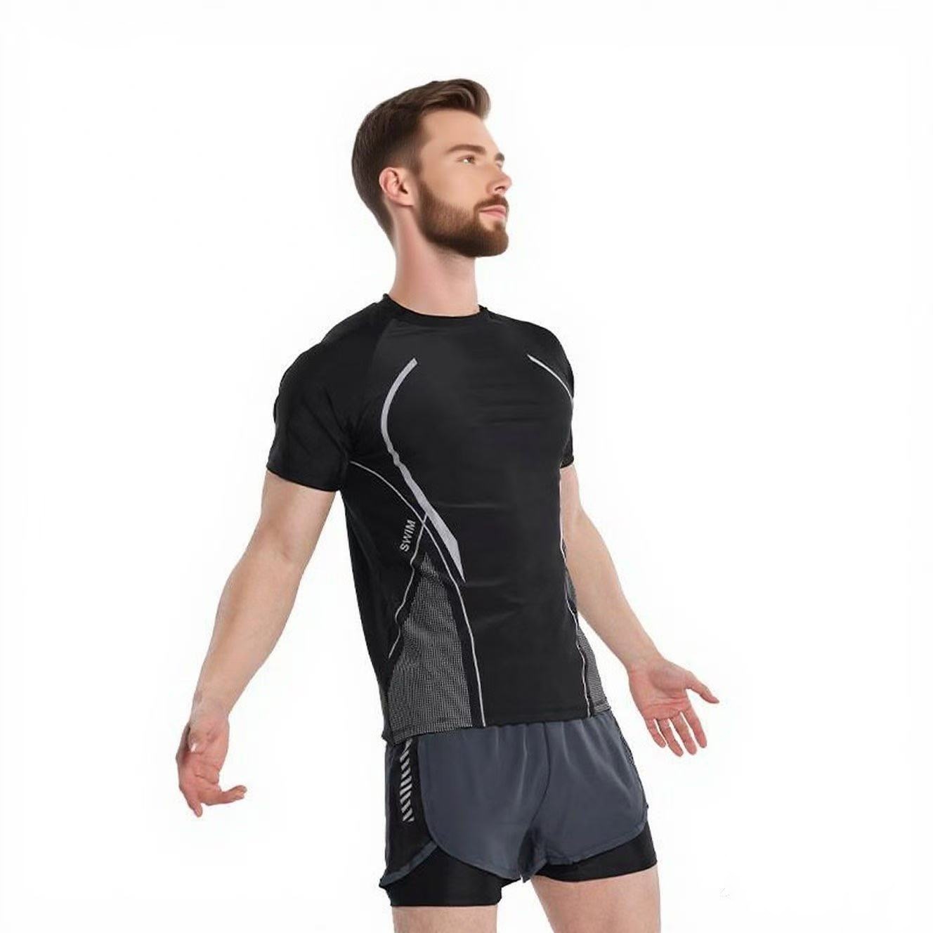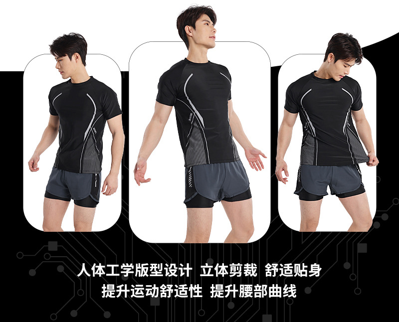 男性の夏の新型速乾スポーツスーツ男性フィットネスランニングパンツ軽スポーツアウトドア水泳セット