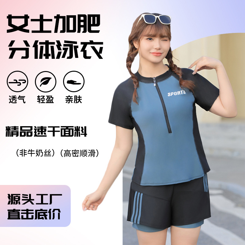 2024新型スポーツ水着の女性用の大きいサイズの太ったmmは肉を遮って体を分けて保守的に腹を遮ってやせて太っている水着の女性を現します。